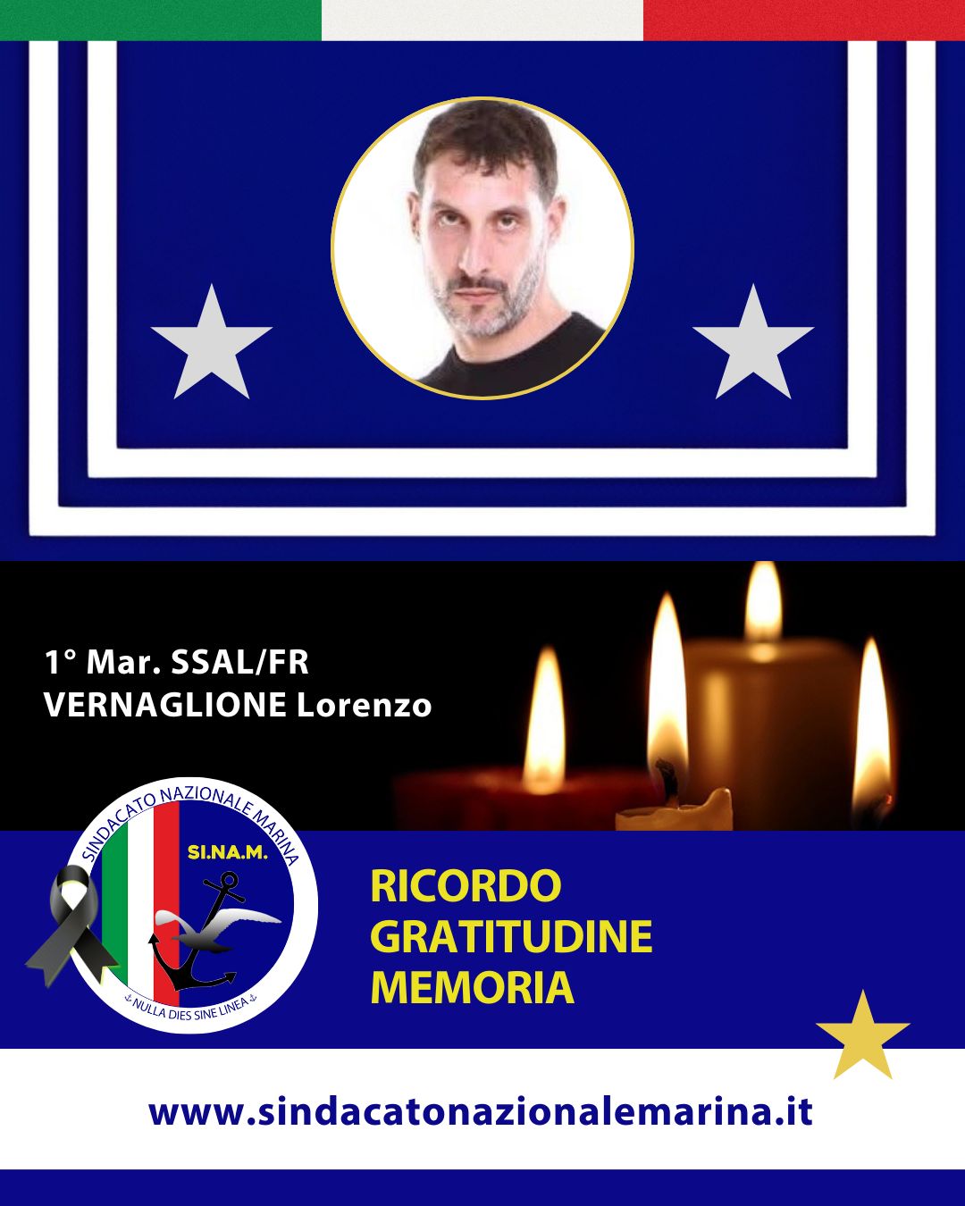 Il Sindacato Nazionale Marina #SINAM esprime vicinanza alla famiglia e alle persone care del collega, 1° Mar. SSAL/fr Lorenzo VERNAGLIONE, scomparso improvvisamente a soli 44 anni.